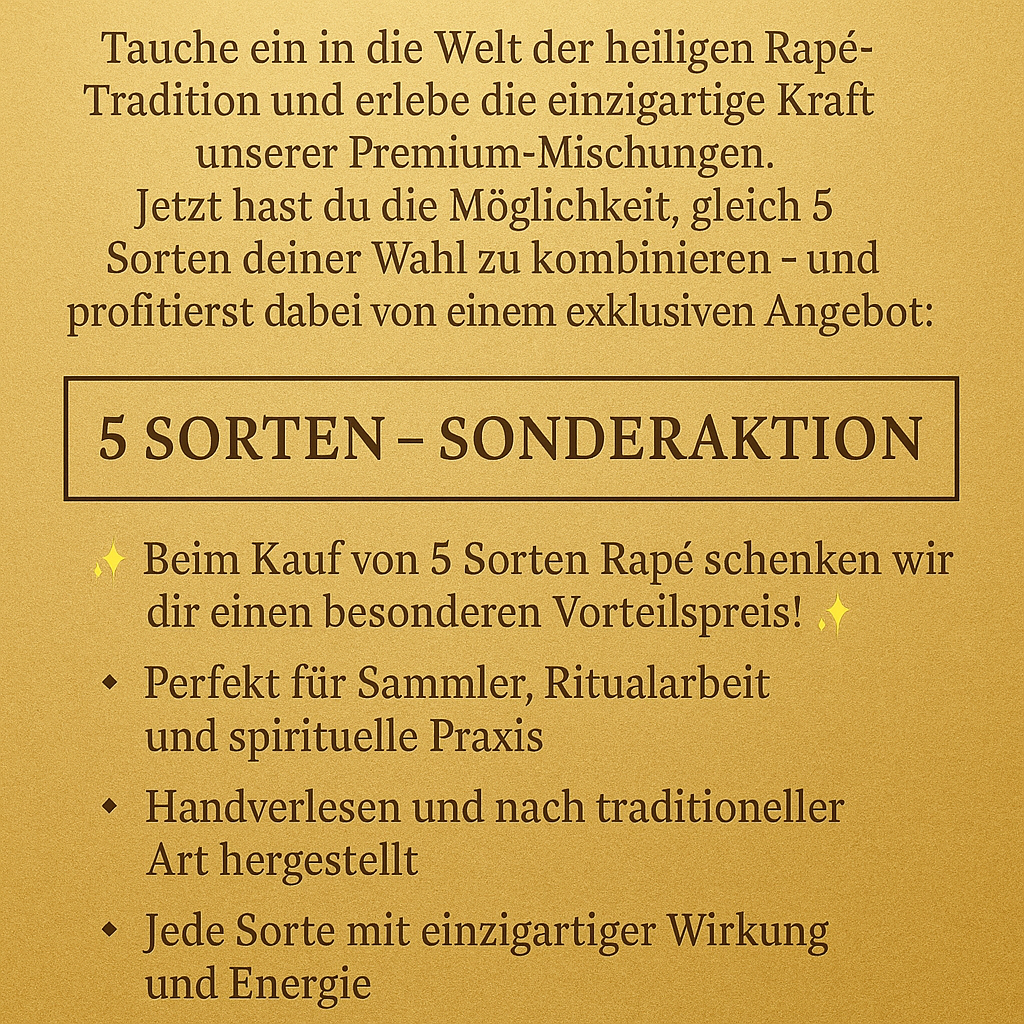 ✨ Beim Kauf von 5 Sorten Rapé schenken wir dir einen besonderen Vorteilspreis!