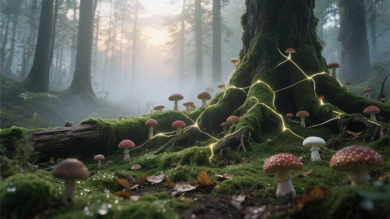 Wir glauben, dass der Mensch ein untrennbarer Teil der Natur ist – nicht ihr Herrscher. Wir kämpfen nicht gegen die Welt – wir lernen von ihr. Pilze, mit ihrem uralten intelligenten Netzwerk, erinnern uns daran, dass alles Lebendige miteinander verbunden ist: Bäume, Erde, Luft und Bewusstsein.
